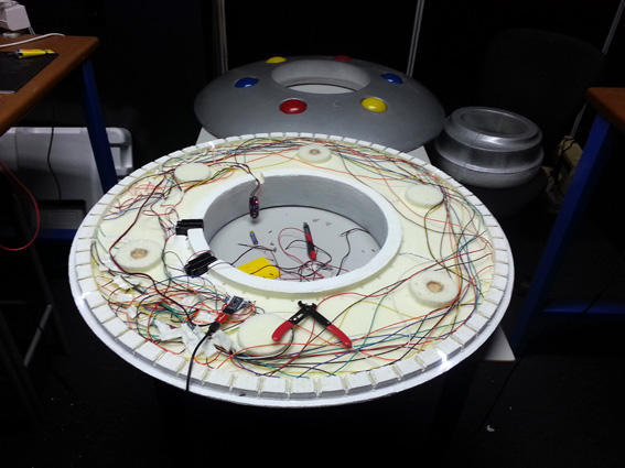 After various experiments with the colours of the saucer top lights I decided on a colour scheme.