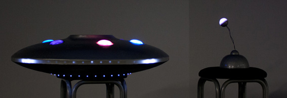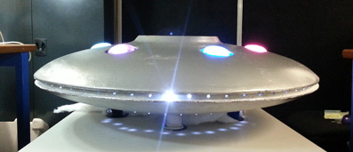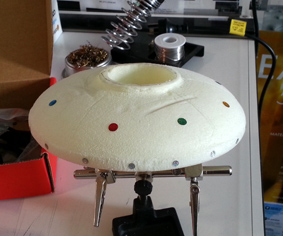 I vaccum-formed the covers for the top lights of the saucer out of clear plastic and the spray-painted them.